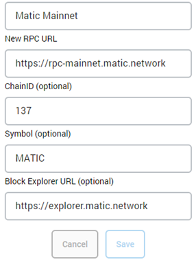 To configure metamask - Enter in the following information and click Save: